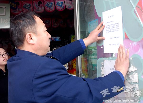 (3月18日上午,全市盐业市场整顿检查领导小组工作人员在超市张贴“温馨提示” )