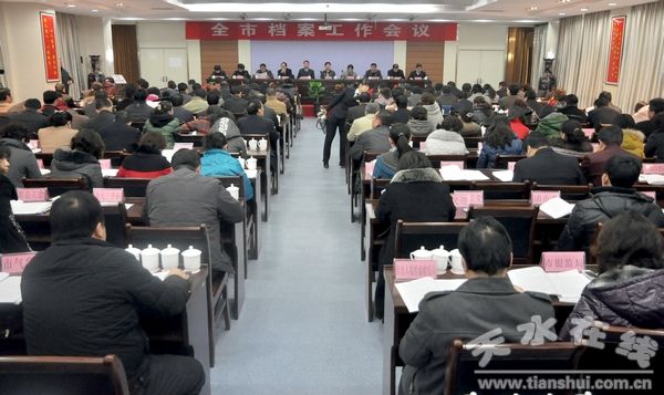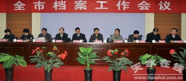 市委常委、市委秘书长蒋晓强出席会议并讲话指出,近年来,全市各级档案部门不断加强档案基础设施建设、档案信息化建设和档案资源开发利用,初步形成了法制健全、档案科学、资源丰富、服务高效的档案工作新格局,圆满完成了“十一五”档案工作规划确定的各项目标任务。他强调,“十二五”是天水市实施关中—天水经济区规划、省委“两翼齐飞”和天水市“1135”区域发展战略的关键时期,全市各级档案部门要以档案资源建设为核心,以档案信息化建设为重点,以档案法制建设和干部队伍建设为依托,着力抓好档案馆库、信息化和人才队伍“三项建设”,努力构建档案资源、档案利用、档案安全“三个体系",全力提升档案工作服务发展、服务群众、服务基层“三项能力”,在服务全市跨越式科学发展中创造新的业绩。各县区、各单位要坚持领导、投入、宣传“三到位”,努力为档案事业科学发展营造一个良好的环境。