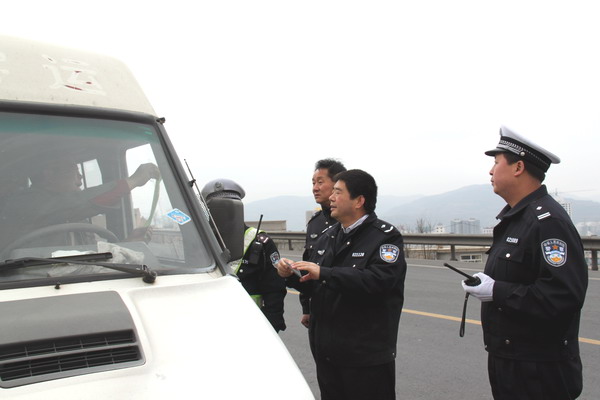 4月3日,天水市公安局副局长、交警支队支队长霍秦生带领机关有关科室人员,先后深入天巉公路天水收费站路口和卦台山执勤点、秦麦高速公路、羲皇大道二十里铺执勤点等秦州、麦积两区主要路段、勤务点,重点检查了执勤民警清明节假首日勤务计划落实及交通安全保障等工作情况。