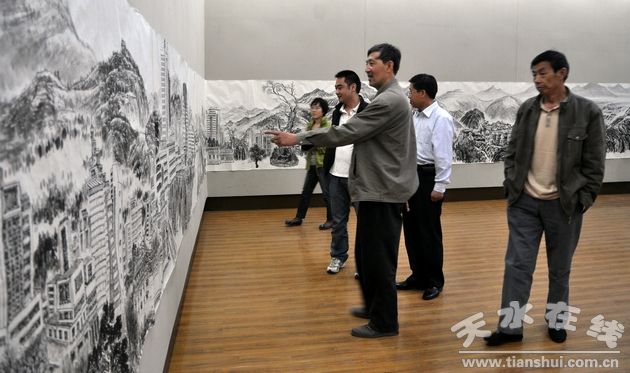 5月8日,著名画家王陇花先生精心创作的巨幅长卷《西部变迁图》陇原卷大型画展在天水市文化馆展出。
