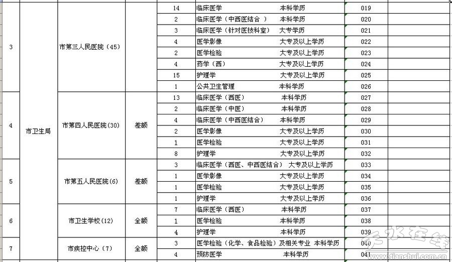 附:天水市2011年市直卫生系统公开招聘医务工作人员职位表