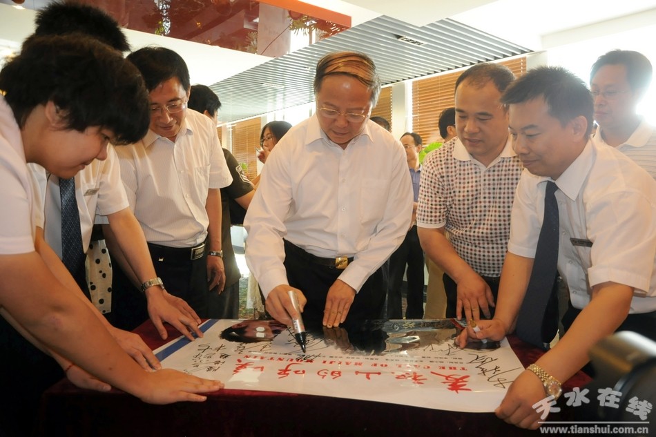 (省委常委、宣传部长励小捷在电影海报上签名 )