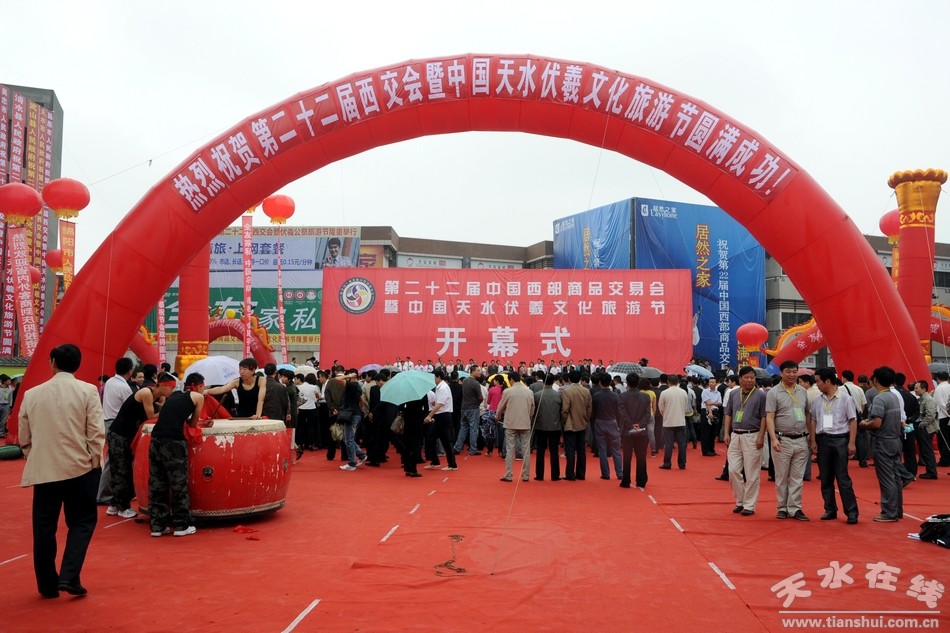 麦积烟雨千古秀,羲皇故里迎嘉宾!六月的天水,百花怒放、宾朋满座,第22届中国西部商品交易会暨中国天水伏羲文化旅游节于6月21日在羲皇故里天水隆重开幕。国家商务部原副部长刘向东,甘肃省政府副省长咸辉,甘肃省政协副主席张津梁,甘肃省政协副主席、天水市委书记张景辉、甘肃省政府副秘书长张正锋,甘肃省政府办公厅副巡视员周虎成,甘肃省商务厅厅长王锐以及陕甘川宁毗邻地区经联会十一方地市的领导、兰州、西安、成都铁路局和经联会办事处的领导、天水市四大组织在家的全体领导参加了开幕式。
