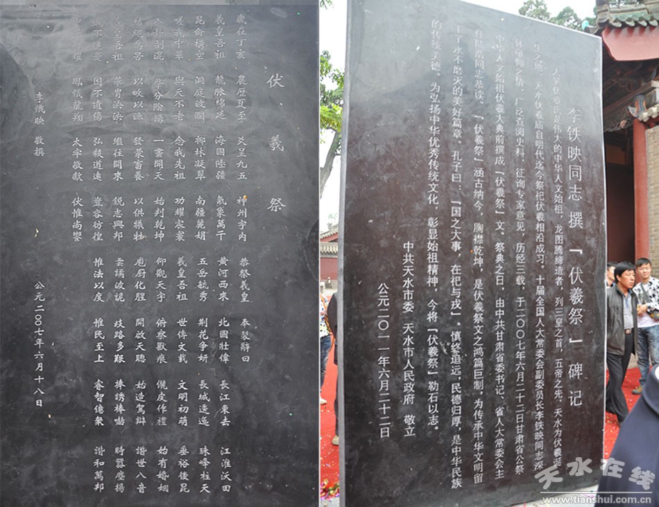 张津梁 张景辉为“伏羲祭”碑揭彩 为“伏羲学院”揭牌(图)