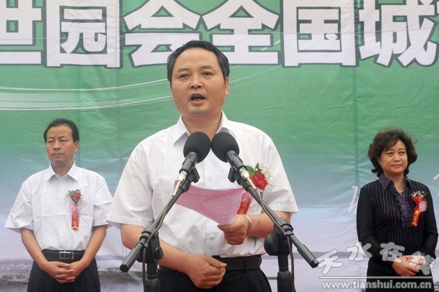 西安市政协副主席黄河,天水市委常委、副市长郭奇若共同启动“行走的西安世园会”第二阶段全国城市巡回路演推广天水站活动。