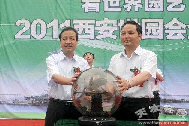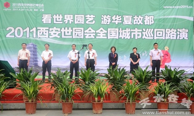 (西安市政协副主席黄河,市委常委、副市长郭奇若共同启动“行走的西安世园会”第二阶段全国城市巡回路演推广天水站活动)