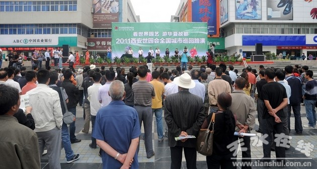 7月10日,由西安市政府组织的“行走的西安世园会”第二阶段全国城市巡回路演推广活动在天水市龙城广场举行。