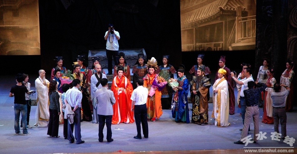我市创排的大型历史秦剧《麦积圣歌》在荣获甘肃省新创剧目大奖、中国秦腔艺术节最高新创剧目大奖等奖项,在天水、兰州、宝鸡、西安、北京梅兰芳大剧院盛大演出,平凉、庆阳、华亭等市县成功巡演之后,日前 ,由中国秦腔四小名旦、我市优秀青年演员袁丫丫领衔主演的B版B角《麦积圣歌》在秦州大剧院精彩亮相,连续演出两场。此次演出在借鉴原有经验的基础上,进一步提升,让人耳目一新。
