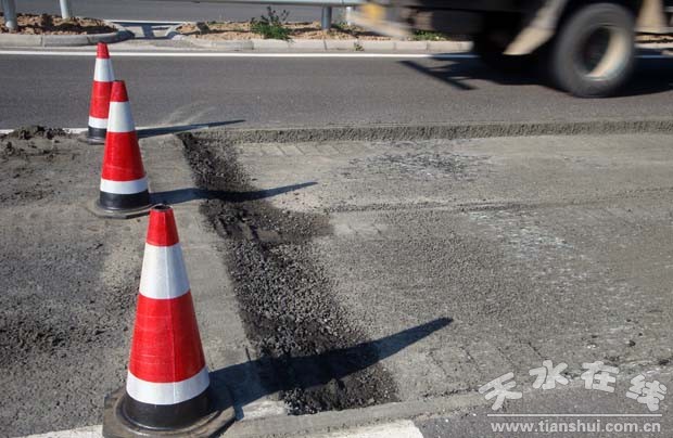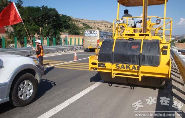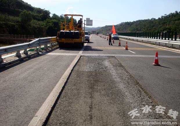 (图为施工单位正在对出现坑槽病害路段进行修补。7月15日拍摄)