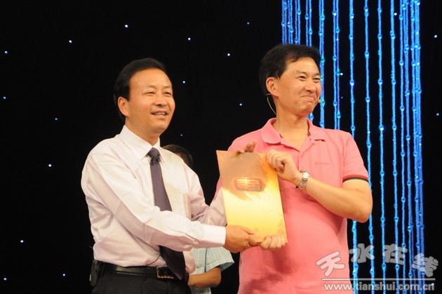 (市委常委、副市长郭奇若向持宝人颁发“天水民间国宝”证书)