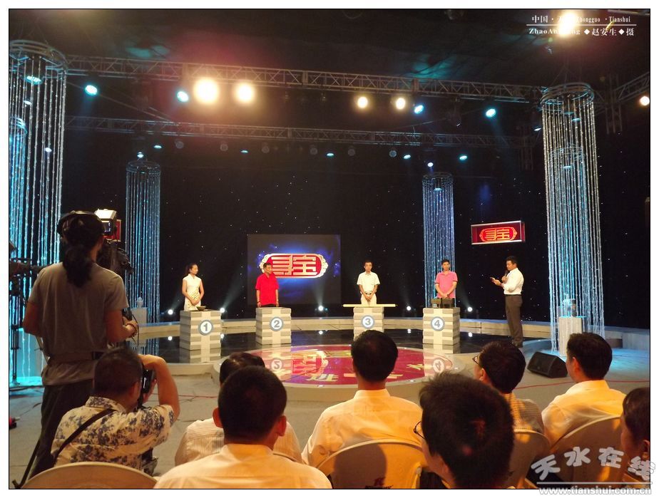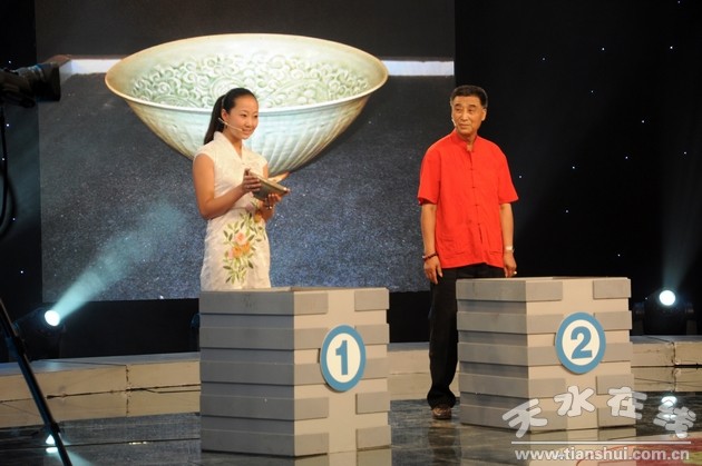 当天下午4时30分,在位于天水南山体育馆的央视《寻宝——走进天水》评选天水“民间国宝”节目录制现场,4名持宝人捧着各自的入围宝贝一经亮相,立刻赢得场下藏友们雷鸣般的掌声。据介绍,1号持宝人赵小姐所持宝物为距今800余年的北宋年代的22公分印、刻花斗笠形大碗;2号持宝人范师傅所持的是天水当地出土距今4000年的齐家三孔玉刀;3号持宝人骆先生所持的是清晚期著名画家蒲华的一幅6尺整纸山水画;最后一名持宝人刘先生的宝贝则是距今3000余年的一对商代青铜方鼎。