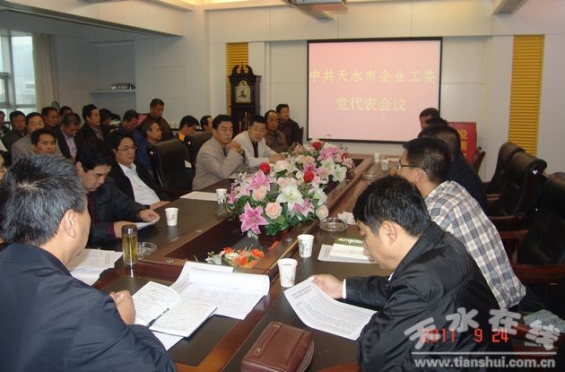 2011年9月24日上午,天水市企业工委系统组织召开了党代表会议,通过民主选举产生了企业工委系统出席中国共产党天水市第六次党代表大会正式代表。