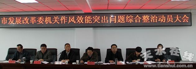 他强调,这次机关作风效能突出问题综合整治活动任务重、要求高、标准严,是一次实实在在的整治作风和效能的活动,来不得半点虚假,市发展改革委一定要以这次活动为契机,把全委的作风和效能提高到一个新的高度和水平,并一直保持下去,用“群众满意不满意”的标准来检验我们的工作作风和效能,切实为天水的经济社会各项发展作出新的更大的贡献。