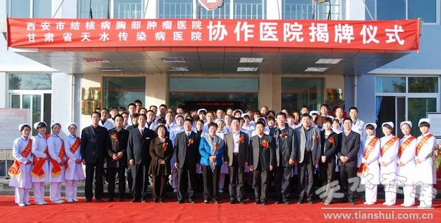 10月28日,甘肃省天水传染病医院(天水市第五人民医院)与西安市结核病胸部肿瘤医院协作医院揭牌仪式在市五院隆重举行,副市长萧菡出席揭牌仪式。