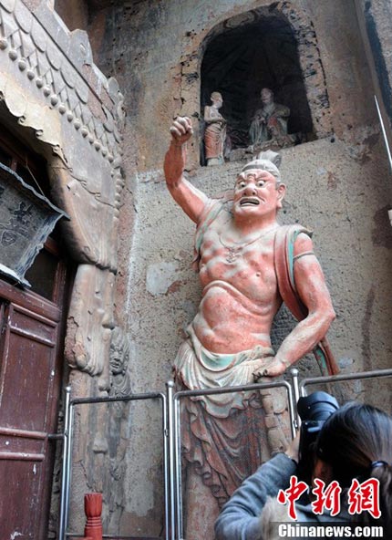 ·国际博物馆日:麦积山石窟人山人海(组图)·司马义·艾买提在京参观麦积山石窟雕塑艺术展(图)