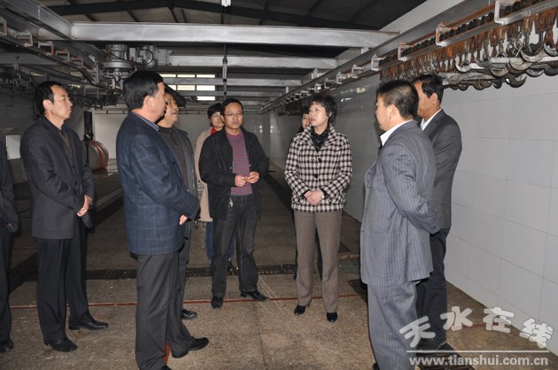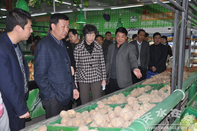 温利平一行首先来到兰天超市,检查了食品供应和食品安全情况,在秦州区粮油批发超市,询问了粮油的价格、货源储备、进货渠道和蔬菜安全检测等情况,在秦州区屠宰场详细了解了猪肉市场的供应情况。随后,检查组一行又来到天天乐菜篮子公司藉滨店、天天乐菜篮子公司配送中心、市第一粮库、麦积区道北粮油批发市场、天绿公司麦积区军供专营店、天天乐菜篮子公司伯阳路店、天绿公司、美味缘食用油有限公司详细询问了食品的销售、价格和运输等情况。