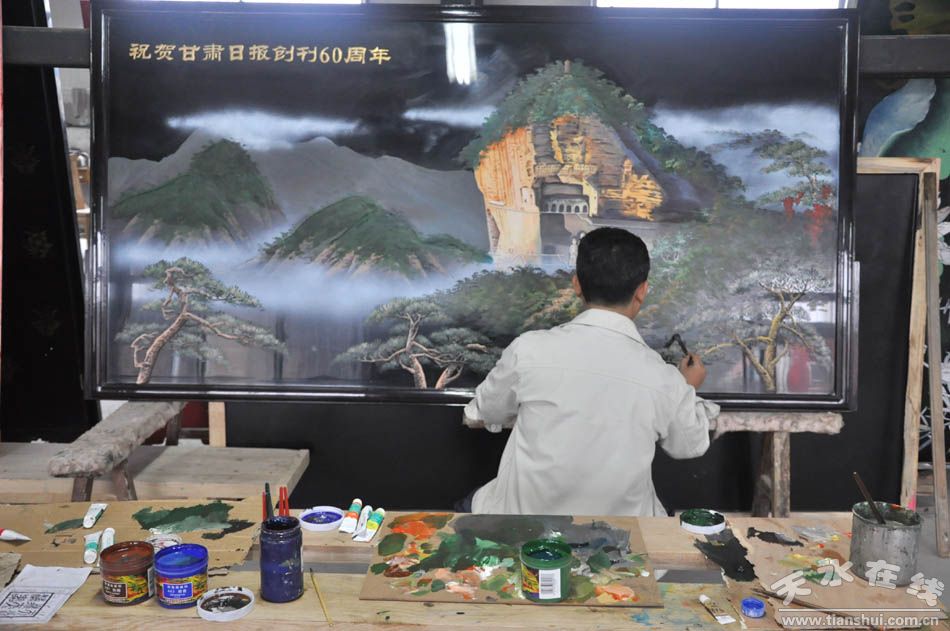 据了解,天水传统漆器的优势是老雕填工艺。用刻刀在雕漆上刻,再填充颜色才算雕漆,这是全国独有的一种技艺与手法;还有皮胎、老大柜等都是漆器装饰的一种,有的已经失传。