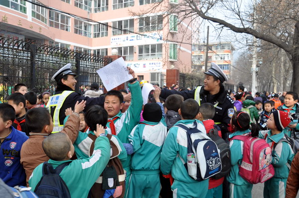 根据全市开展摩托车道路交通违法行为专项整治方案计划,12月20日为宣传教育阶段的最后一天。 当天,天水交警支队结合城区各小学上放学期间大多家长骑摩托车接送孩子这一现状,抽调机关精干警力,配合秦州城区交警大队,通过学生上放学前在各校园周边向家长发放市政府通告和支队告知单、宣讲相关法律法规及安全常识等形式,就摩托车交通违法整治行动进行了集中宣传教育,在转入警告阶段前再次掀起了此次专项整治的宣传新高潮。