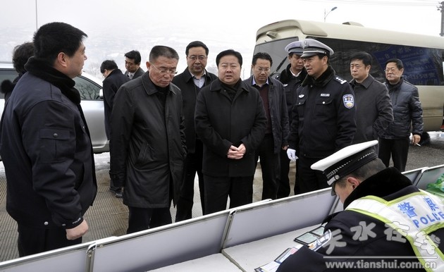 春节临近,1月20日上午,市委书记马世忠,市委副书记、市长王锐,市委常委、市委秘书长蒋晓强,副市长温利平专程到吴家崖收费站交通安全检查点,看望和慰问正在执勤的交通警察,并通过他们,向辛勤工作在执勤一线的广大交通警察,致以亲切的问候。 马世忠、王锐与执勤人员一一握手,详细了解了春运交通安全工作实施情况及节日期间勤务安排。马世忠、王锐亲切地说,马上就要到新春佳节了,为了保证全市的道路交通安全畅通,使广大出行人员能够平安的回家与亲人团聚,你们舍小家顾大家,仍默默无闻的坚守工作岗位,奋战在春运道路交通安全管理第一线,我们代表市委、市政府感谢你们,你们辛苦了,并向你们及你们的家人致以新春的祝福和问候,祝愿你们在新的一年里生活幸福,身体健康,工作顺利,阖家欢乐。