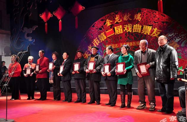1月31日晚,2012年天水市第二届戏曲票友大赛在市文化馆圆满落幕。经过三天紧张激烈的比赛,三十名优秀选手进入决赛。副市长霍卫平,市委宣传部、市文化局等负责人为获得一二三等奖的选手颁奖。