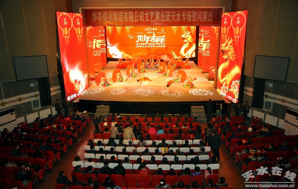 开场舞《龙腾虎跃》拉开此次文艺演出的序幕,山西民歌《想亲亲》,男生独唱《最美的歌儿唱给妈妈》,舞蹈《力量》、 《煤海情深》、 《敦煌神韵》,板胡独奏《春之声》,架子鼓《串烧》,戏曲联唱等一个个精彩纷呈的节目,给现场的观众带来了美好视听享受,也为天水人民带来了一场丰富的文化大餐,赢得现场观众的阵阵掌声。精彩的演出也展现了华煤人开采阳光、超越梦想,自力更生,昂扬向上的创业精神。
