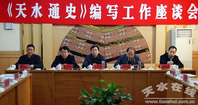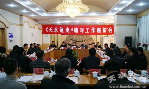 2月23日,《天水通史》编写工作座谈会在天水迎宾馆召开。会议通报了《天水通史》统稿情况,编写、考证、统稿人员讨论交流了《天水通史》修改、完善事宜。市委常委、组织部长王光庆,市委常委、宣传部长彭鸿嘉出席座谈会。