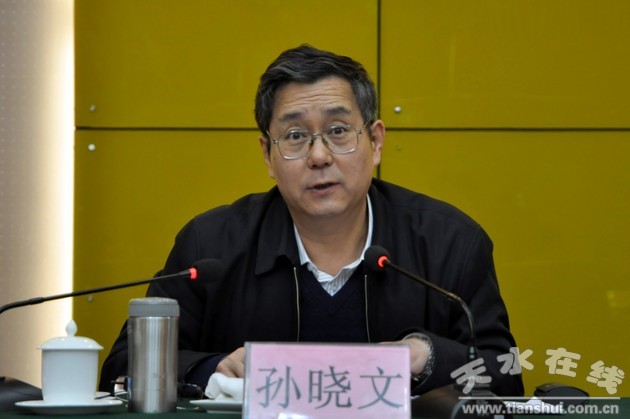 孙晓文在讲话中说,关中——天水经济区是国家《西部大开发“十一五”规划》确定的三大重点经济区之一。 《关中——天水经济区发展规划》将天水定位为经济区次核心城市,平凉、庆阳、陇南为辐射区,这将对天水市的发展具有重大意义,为陇东南地区的发展创造了难得机遇,也必将对全省发展产生积极作用。他要求,要抢抓这次千载难逢的历史机遇,积极应对各种挑战,在解放思想中真抓实干,在转变观念中破解难题,认真贯彻落实省政府《意见》,实施好《规划》,加快科学发展;要积极探索建立区域合作发展的工作机制,加强与经济区内各地市的合作交流,形成资源共享、优势互补、相互促进的良好格局;要强化措施,积极抓好近期的工作落实;要全面实现《规划》的各项任务,实现天水市和辐射区经济社会跨越式发展,促进全省经济社会全面协调可持续发展。