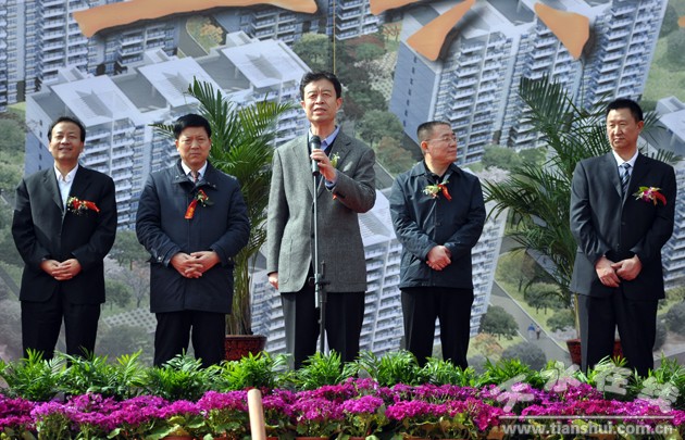 省国土资源厅厅长张力学,省国土资源厅副厅长郭玉虎、陈汉、宋史刚,市委副书记、市长王锐,市委常委、市纪委书记李美华,市委常委、常务副市长郭奇若,市委常委、秦州区委书记张明泰,市人大常委会副主任谢简平,市政府秘书长逯克宗出席仪式并为项目开工奠基。