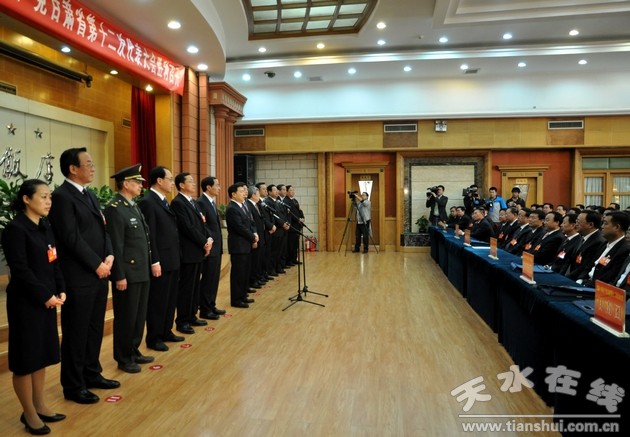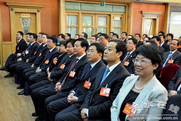 天水在线兰州讯:4月23日上午,省委书记、省人大常委会主任王三运,省委副书记、省长刘伟平,省委副书记欧阳坚等省委十一届常委,集体亲切看望了参加省第十二次党代会的我市及其他各市州的党员代表。
