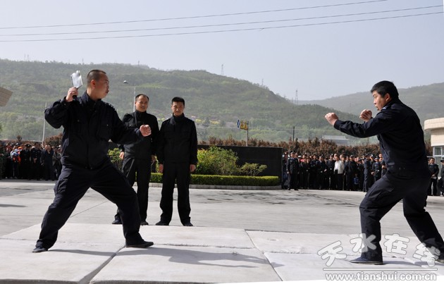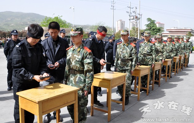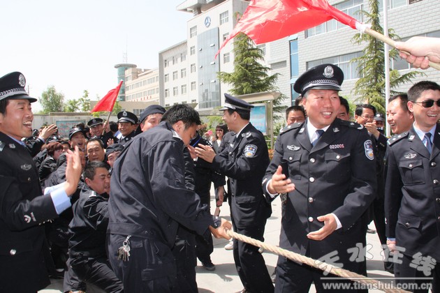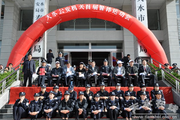 天水市公安机关首届警体运动会设男子篮球、男女混合拔河、队列礼仪、警务实战技能、武器分解组合与实弹射击、三公里武装越野、非杀伤性武器投掷共七大比赛项目,武警支队、消防支队和交警支队进行了岗位战术表演。开幕式上,来自各县局、分局、武警、消防、交警、市局机关的11支代表队770名运动员迈着整齐的步伐,举行了庄严的入场式,展现了全市公安民警的飒爽英姿和文明威武的良好形象。比赛中,市县两级公安机关主要领导亲自带队,为各自代表队加油助威,参赛民警不甘落后,奋勇争先,齐心协力,赛出了风格,赛出了水平,整个赛事精彩纷程,掌声不断,赢得到会领导、媒体记者和观看群众的好评。