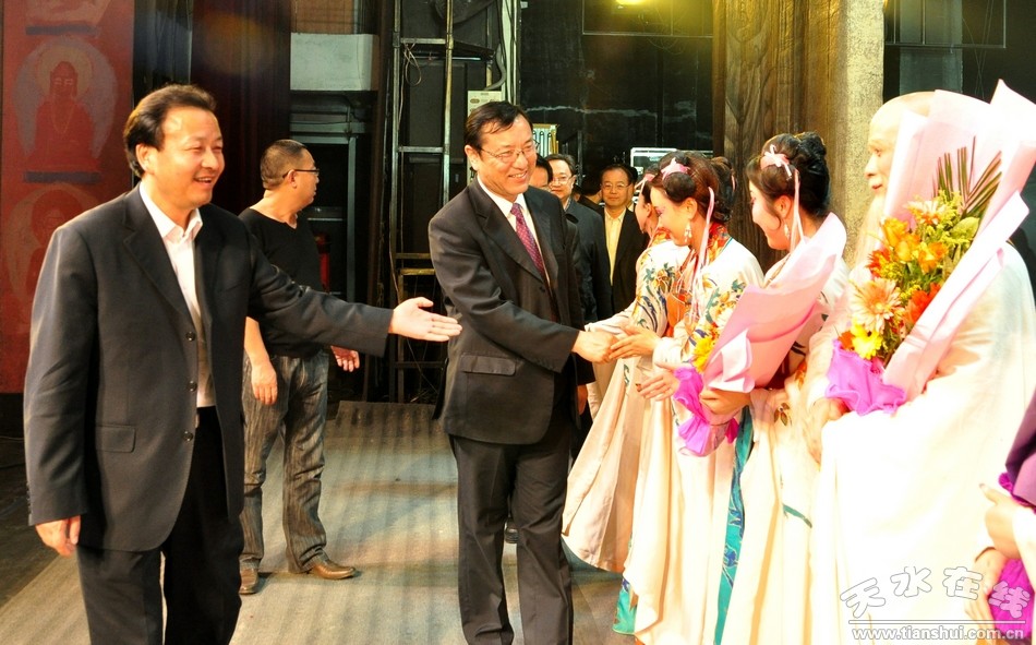 (十一届省委常委、宣传部长连辑,市委常委、常务副市长郭奇若观看演出。)