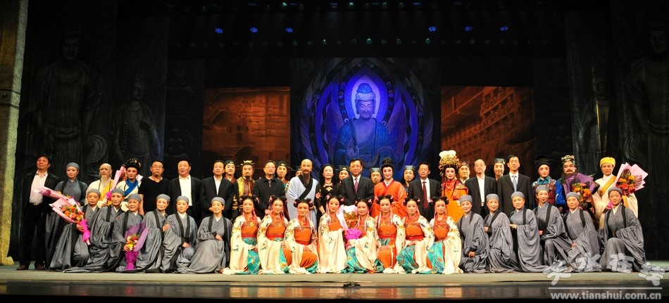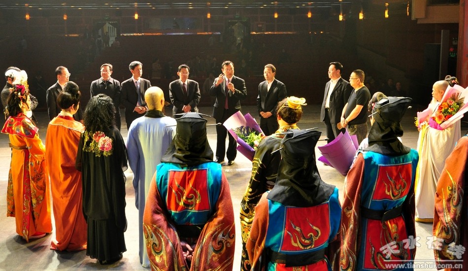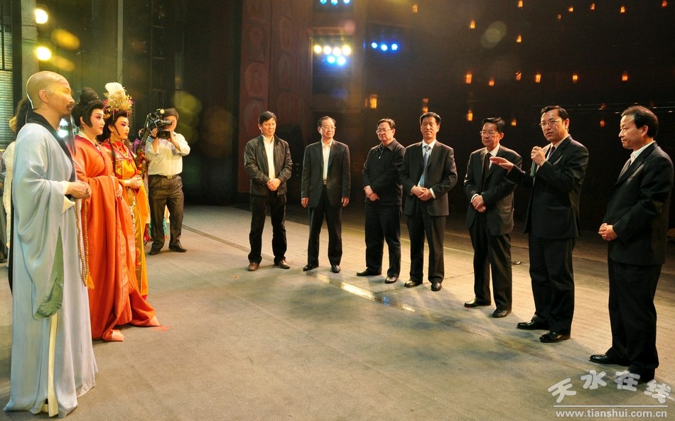 为庆祝甘肃省第十二次党代会胜利召开,“甘肃地方戏曲获奖剧目演出周暨曹锐作品展”从4月15日至28日在兰州陆续演出。4月27日晚,获中国秦腔艺术节大奖“优秀剧目奖”的我市大型历史秦剧《麦积圣歌》在金城大剧院展演,十一届省委常委、宣传部长连辑,市委常委、常务副市长郭奇若观看演出。