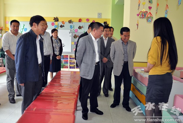 柴金祥、王锐、霍卫平一行参观了幼儿园,详细了解了市一幼建设情况。并观看了孩子们展示的骑木马、舞龙等形式多样的“阳光体育”运动。