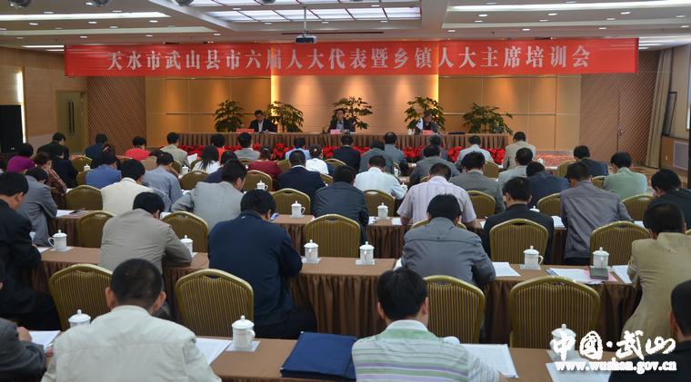 6月1日,武山县召开市六届人大代表暨乡镇人大主席培训会议。市人大常委会副主任韩一兵、市人大常委会代表人事工委主任刘百顺、副主任温新舫出席会议,武山县选举的市六届人大代表、各乡镇人大主席及县人大机关全体干部共80余人参加培训会议。