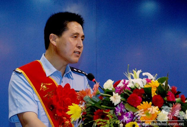 (荣获“全国优秀人民警察”荣誉称号的甘谷县公安局副局长牛卫忠作报告)