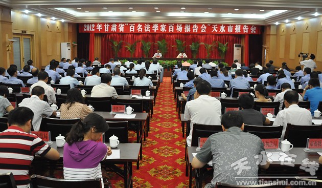 据了解, “百名法学家百场报告会”是由中组部、中宣部、中央政法委、国家教育部、司法部和中国法学会组织的、在全国范围内开展的法治宣讲活动。全省共安排报告会30场次,天水举办两场。