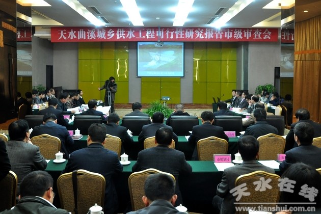 曲溪城乡供水工程是市委、市政府着眼我市中长期城乡供水而启动的重大基础性民生工程。工程建设主要内容为:在小陇山林业实验局观音林场境内曲溪白家河冷水沟门附近建设总库容7782万立方米的枢纽水库一座,从冷水沟门至麦积区甘泉镇胡家沟建设长约21.6公里的自流遂洞一条,在甘泉镇胡家沟口建设20万立方米地表水处理厂一座,库水经自流遂洞和输水管线至胡家沟水处理厂处理净化后并入秦州、麦积两区城乡供水管网,整个工程估算总投资约26.5亿元。2011年7月,按照市委常委会的要求,市住建局委托甘肃省水利水电勘测设计研究院和中国市政工程西北设计研究院有限公司分别就水源部分和净水厂部分编制可行性研究报告。两家设计单位对工程现场进行大量测量、测绘、取样、分析之后于今年7月中旬分别完成可行性研究报告初稿。在7月26日召开的可研报告初稿汇报会和8月9日召开的市长办公会议上,与会专家和领导对完善工程可研设计工作提出了具体要求。按照汇报会和市长办公会议要求,两家设计单位对可研文本初稿进行了仔细修订,并对现状水源、供水规模等部分基础资料做了进一步完善,对输水洞线、供水管网等部门的经济分析、投资估算进行了补充调整。