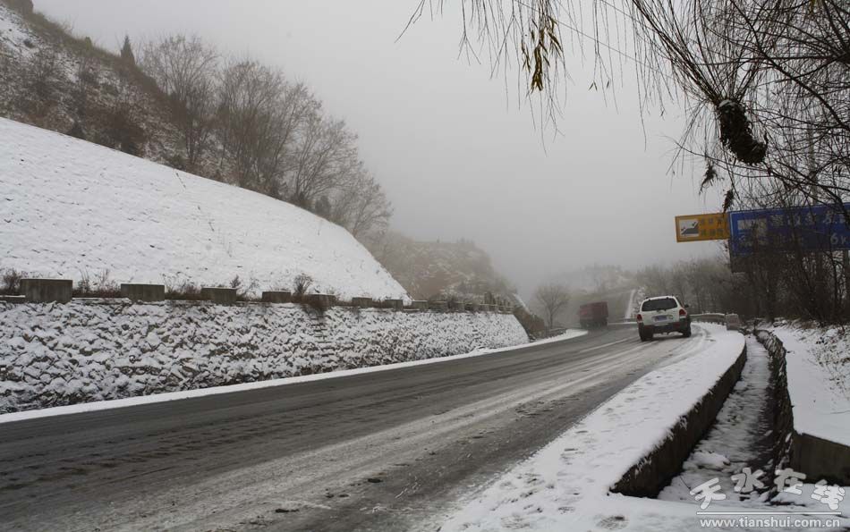 受北方下滑冷空气和高原短波系统共同影响,11月30日夜间,天水市普降雨夹雪。图为秦州城区外环路