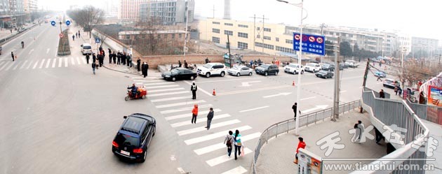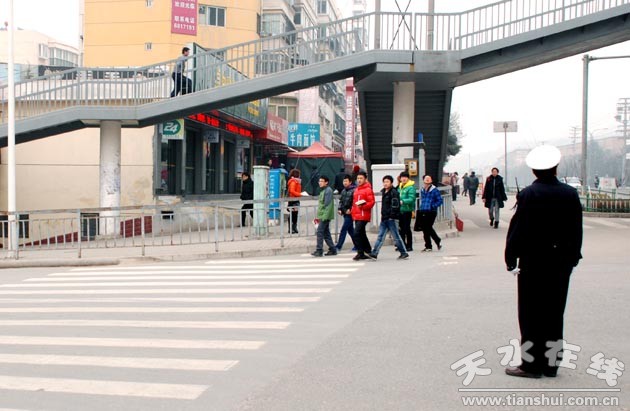 长期以来,天水师范学院住在华英公寓的学生每天要跨经秦州区羲皇大道上课,因早、中、晚下课高峰期学生及周边群众人流量大,加之羲皇大道上机动车辆多、速度快等原因,曾多次发生过交通事故,存在较大的安全隐患,直接影响到学院师生员工及周边群众的安全。为了彻底解决这一问题,学院经过多次论证、积极筹划,争取资金,投资200万元建设了羲皇大道师院过街天桥。过街天桥建成多年,但使用效果不佳,过街天桥只是一道美丽的风景,学生们依然我行我素,横穿马路,存在很大的安全隐患。多年来,师院路附近一直存在着乱摆摊和占道经营的问题,严重影响了过往车辆的通行和周边的交通秩序。