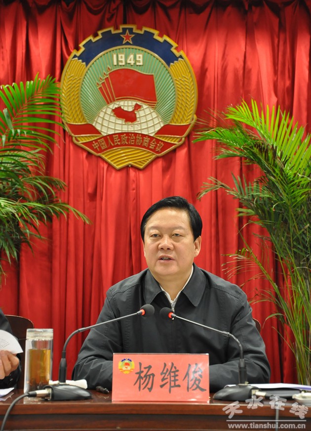 12月19日上午,天水市委副书记、市政协主席杨维俊主持召开天水市政协六届五次常委会议。市政协副主席王钦锡、安志宏、杨发元、何道华、雷传昌、窦正安、蒲军、张克强、马百龄,市政协秘书长王振宇出席会议。