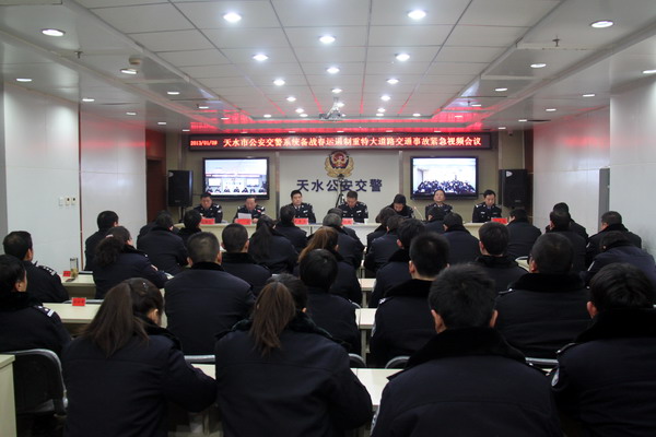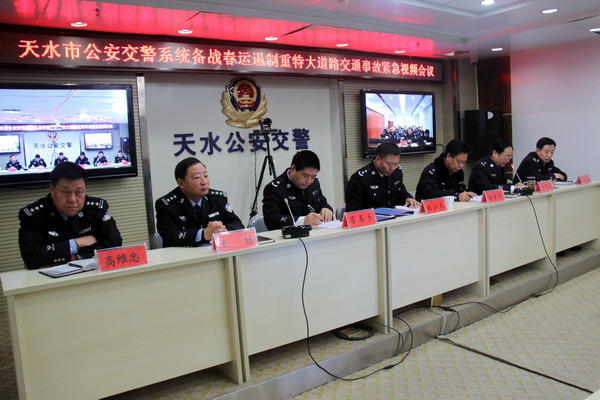 为了认真贯彻1月4日天水市政府安全生产工作电视电话会议精神,切实吸取武山县“1.7”交通事故惨痛教训,1月9日上午,天水市公安局交警支队召开了全市交警系统备战春运遏制重特大道路交通事故紧急视频会议。市政府党组成员、市公安局党委书记、局长张江武,市公安局副局长、交警支队支队长霍秦生出席会议并做重要讲话,会议由交警支队政委杨金生主持。