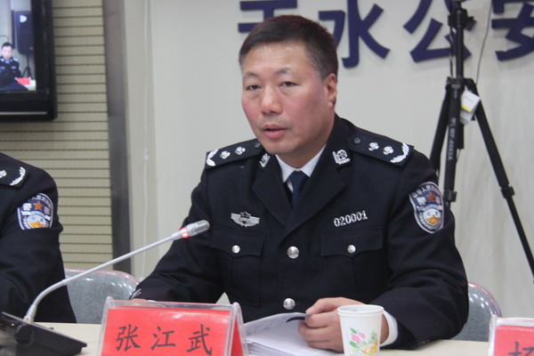 张江武在讲话中强调,一要提高思想认识,高度重视武山县“1.7”道路交通事故所带出全市农村道路交通安全存在私家车和摩托车违法载客、客车严重超员等交通违法行为突出,以及村民交通安全意识薄弱等问题;二要突出工作重点,全面落实各项交通安全管控措施,要加大道路查控、巡查力度,加强人、车、路安全管理,把警力向基层路面尤其是农村道路部署,提高路面见警率和管事率;三要抓好队伍建设,提高民警素质,加强民警教育,保证民警文明、规范执法,保护民警自身安全;四要加大宣传力度,在危险路段设置交通安全警示牌,在重要路口、路段张贴宣传标语、发放宣传单,充分利用广播、电视、报纸、互联网等媒体加强交通安全宣传教育,组织民警走进农村开展交通安全集中宣传;五要搞好协调配合,形成交通安全“政府牵头、各部门携手联动、全社会齐抓共管”的良好局面,为“两会”、“春运”期间道路交通安全、有序、畅通营造良好的道路交通环境。