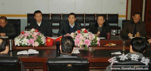 1月28日,天水市工信委党委书记、主任王祥林主持召开中心组学习扩大会议,传达学习了市委、市政府《关于改进工作作风密切联系群众的实施意见》和《关于贯彻落实习近平总书记重要批示厉行勤俭节约反对铺张浪费的实施意见》。