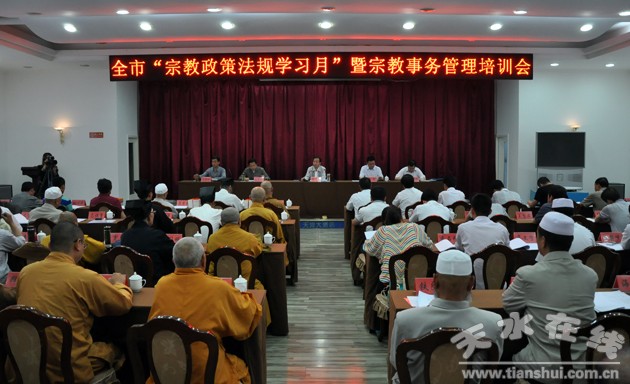 6月8日,全市“宗教政策法规学习月”暨宗教事务管理培训开班,市、县区宗教干部、市级各宗教团体及部分重点宗教活动场所负责人等共100余人参加培训。