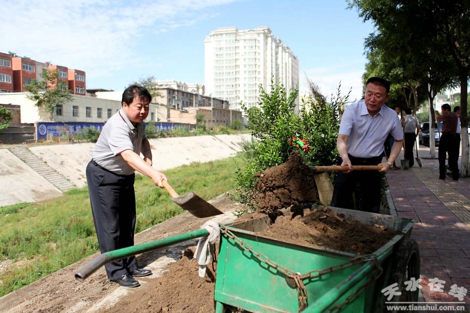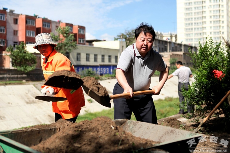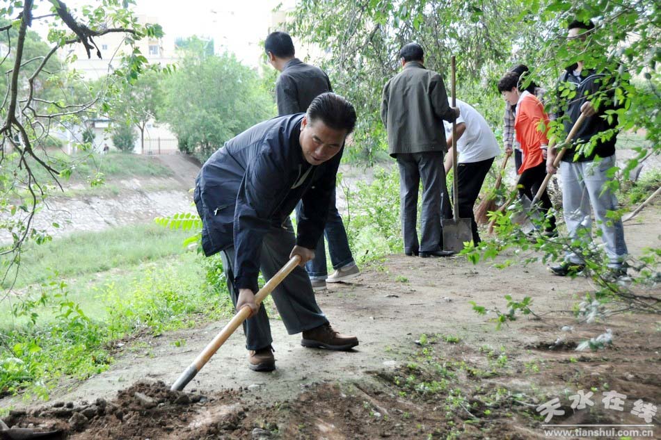 当天上午九点左右,马世忠、柴金祥、王锐、杨维俊等一行来到秦州区罗峪沟皇城路段,与前来参加义务劳动的机关干部、环卫工人一起,认真清理清运垃圾杂物,细致打扫卫生死角,劳动场面热火朝天。