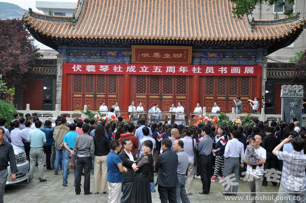 6月15日,在2013(癸巳)年甘肃省公祭中华人文始祖伏羲大典暨第24届中国天水伏羲文化旅游节来临之际,天水伏羲琴社成立五周年书画展在万寿宫举行。共展出书画、篆刻、剪纸等艺术作品共60余幅,这些作品体现了全体社员的共同爱好和高尚追求。