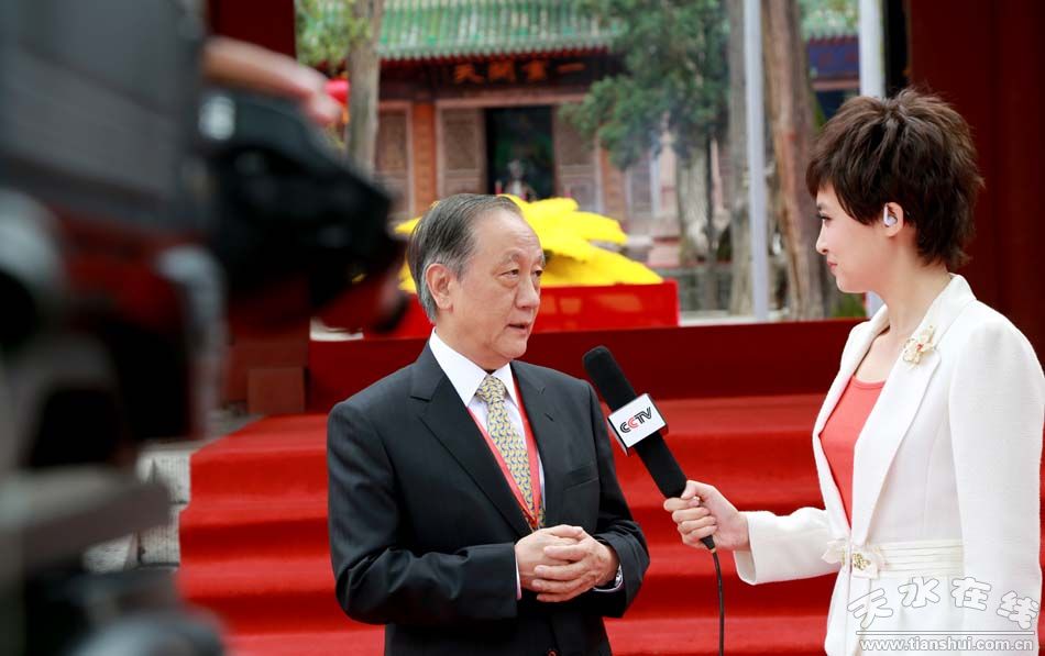 ▲台湾地区新党主席郁慕明在公祭太昊伏羲大典现场接受中央电视台记者采访