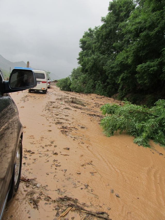 ▲仙人崖景区内道路仍然被淤泥覆盖(天水在线6月23日摄影)