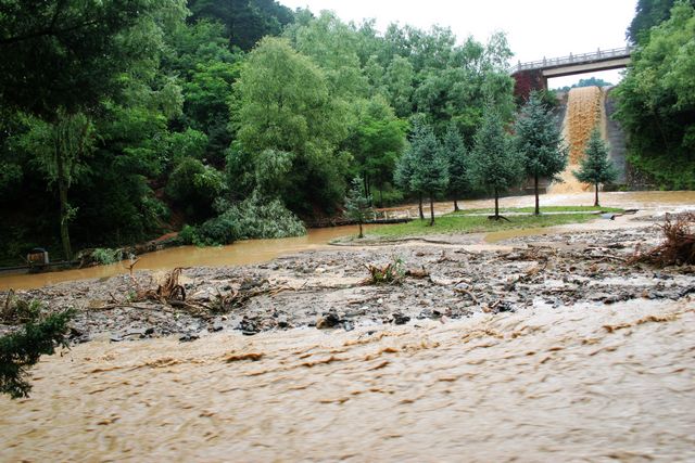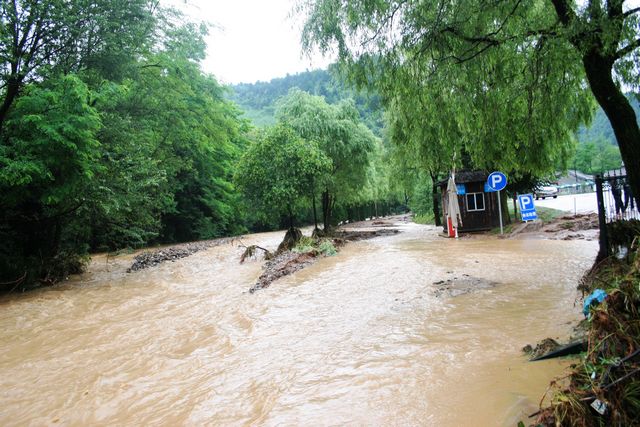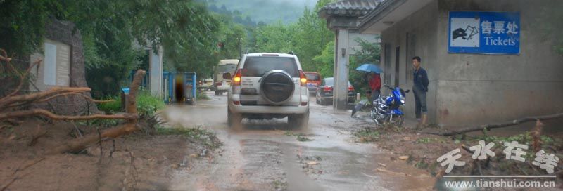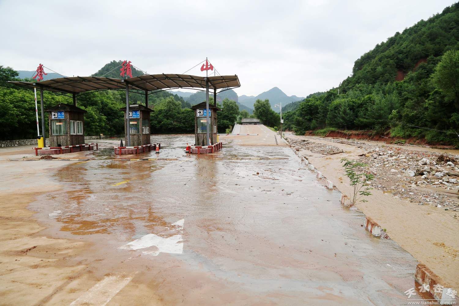▲仙人崖景区内道路仍然洪水漫延(天水在线6月23日摄影)
