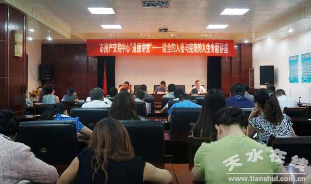 6月25日上午,天水市房地产产权交易管理中心举行第三场“道德讲堂”主题学习会,会议由市房地产管理局副局长、市房产交易中心主任赵振林主持召开,中心全体干部职工聆听了讲座。
